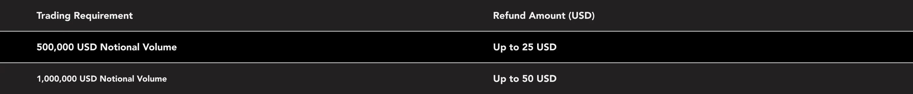 *If there are multiple eligible accounts under the same client’s name, clients need to select one of them to activate the promotion and receive the refund, but the deposit requirement and trading volume will be calculated for all eligible accounts combined.