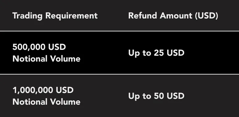 7.The refund request will be rejected if the client fails to meet the trading requirements for the month. If a client suspects they may have been wrongfully rejected, they must resubmit a request via client portal.